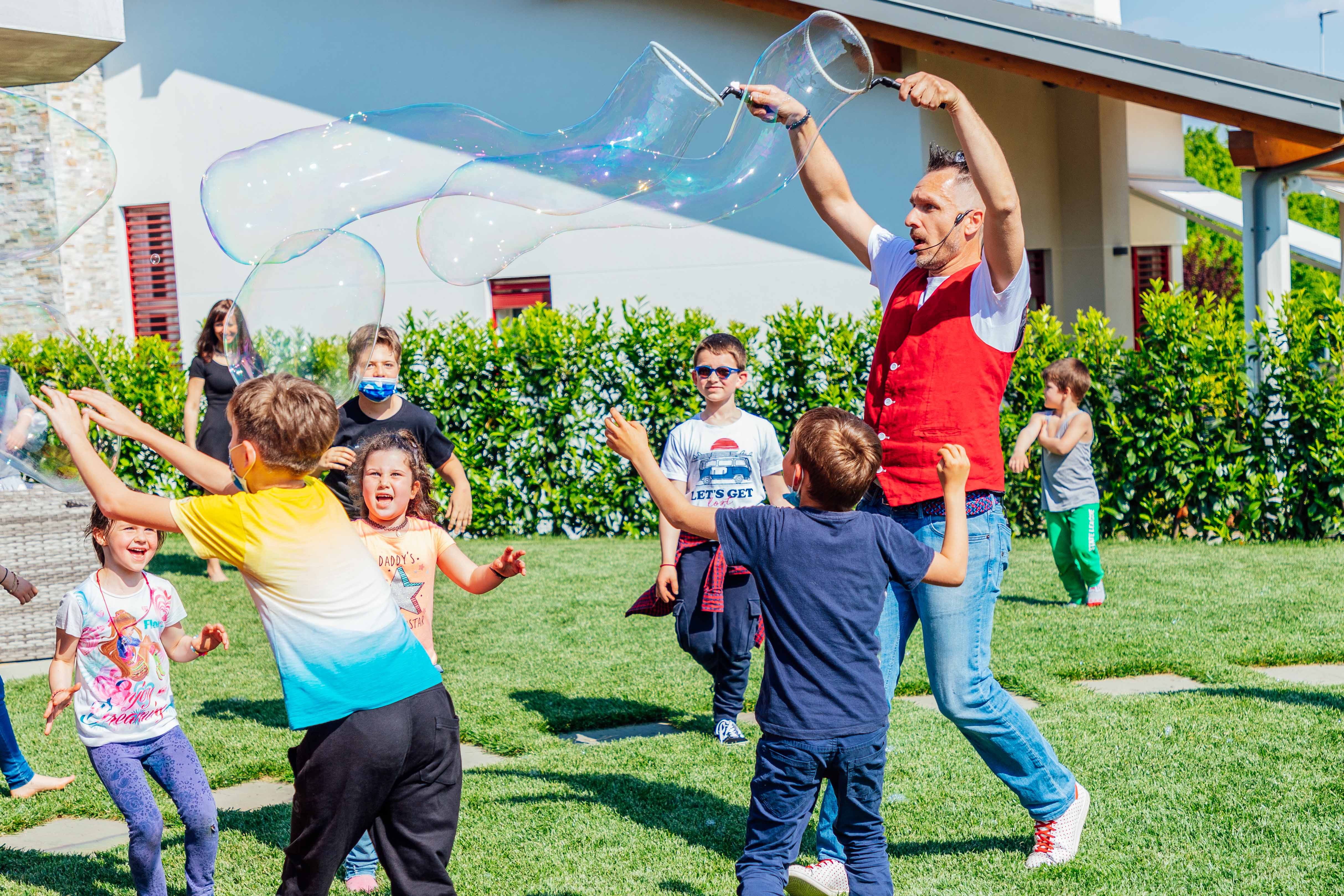 L’utilizzo dello yoyo delle bolle e della bacchetta fluttuante delle bolle, aggiungerà un elemento unico e sorprendente alla festa! Tra balli divertenti e giochi interattivi sarà un’esperienza indimenticabile per tutti i partecipanti.
